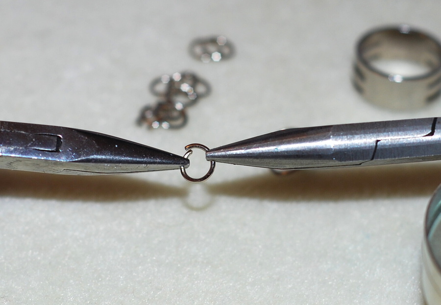 Způsob otvírání kroužků. Kroužky otevřete uchopením do dvojích kleští, otvíráte směrem od sebe. Kroužky vždy pečlivě zavírejte.