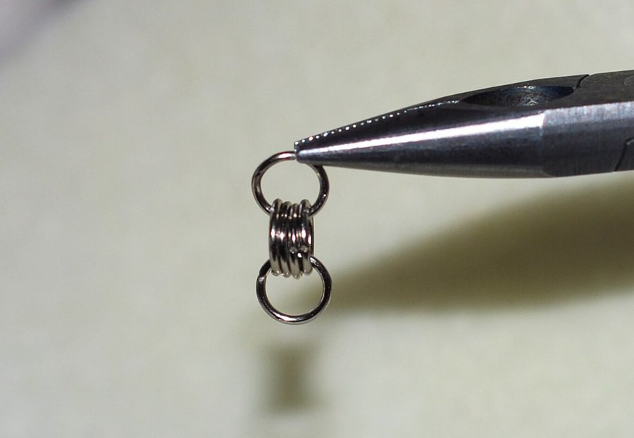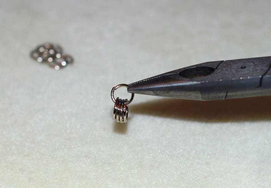 Do otevřeného kroužku navléknete 4 kroužky a zavřete.