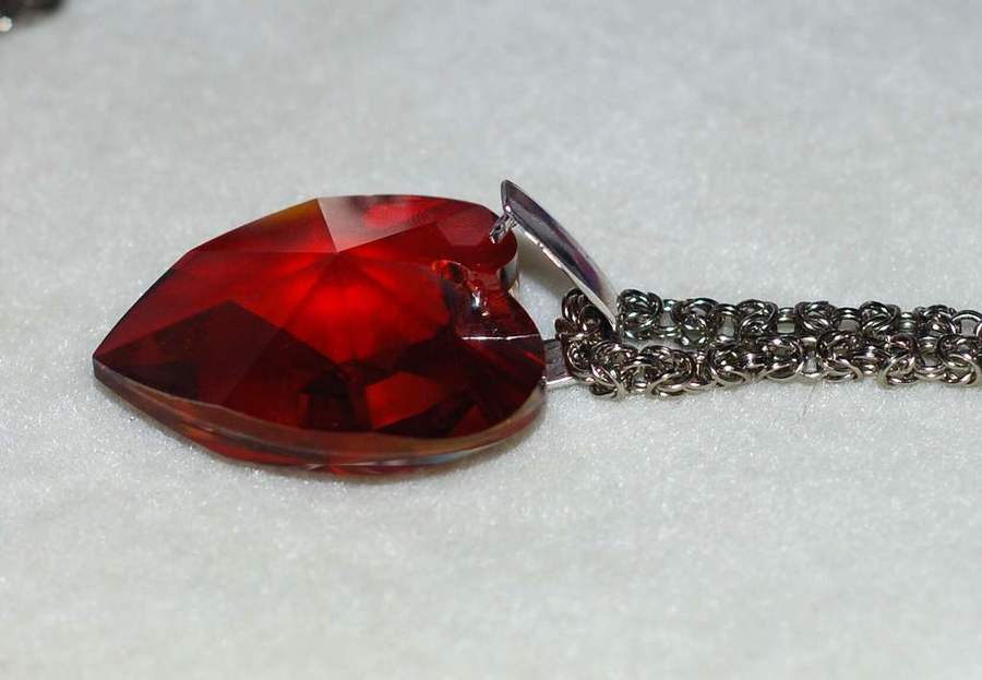Chvíli jsem si lámala hlavu jaký šperk připravit na svátek Svatého Valentýna připravit. Že by to mělo být něco se srdíčkem, o tom jsem nezapochybovala. A tak jsem zvolila řetěz z kroužků vyrobený byzantskou vazbou a na něj zavěšené velké srdce ze skla Swarovski. Pokud chcete dárek pro přítele, tak můžete stejnou technikou jen z větších kroužků vyrobit pánský náramek.