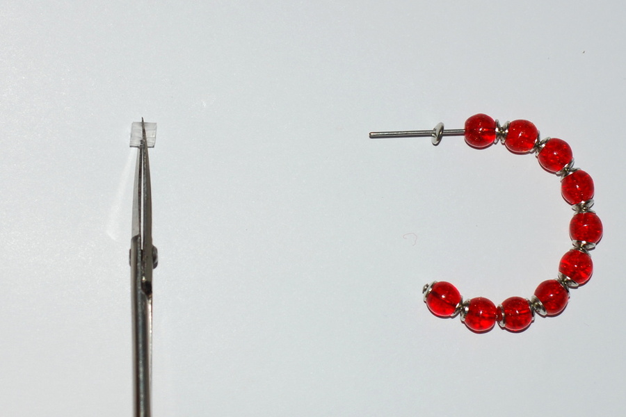 5.Navléknete ustřiženou polovinu plastové zarážky za poslední korálek