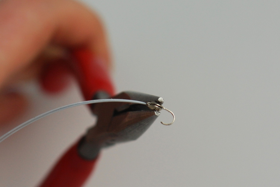 1. Ustřihnete 2x 50cm lanka. Na lanko navléknete kalotu a zamačkávací rokajl, na konci lanka rokajl zmáčknete.