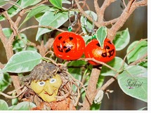 Helloween, nechtělo se mi ho dělat z korálků. A tak jsem zabrousila jinam. I – clay je speciální lehká modelovací hmota, tvrdnoucí na vzduchu. Po uschnutí zůstává pružná a je velmi lehká. Protožejsem v šuplíku našla jen žlutou, použila jsem ještě univerzální metalické barvy Artemiss.