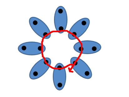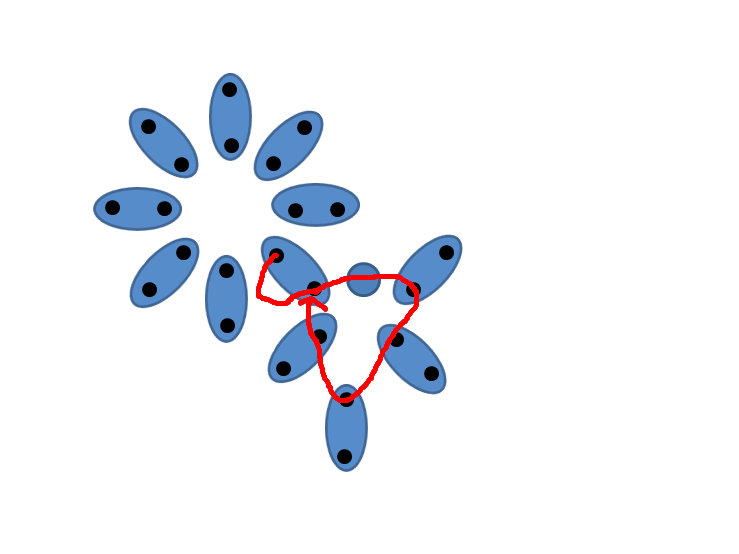 3. Provléknete rokajl a korálek Twin za rokajlem ,u tohoto korálku Twin provléknete i druhou dirku, navléknete 7 korálků Twin a provléknete ještě jednou korálek Twin, ze kterého vycházi vlasec.